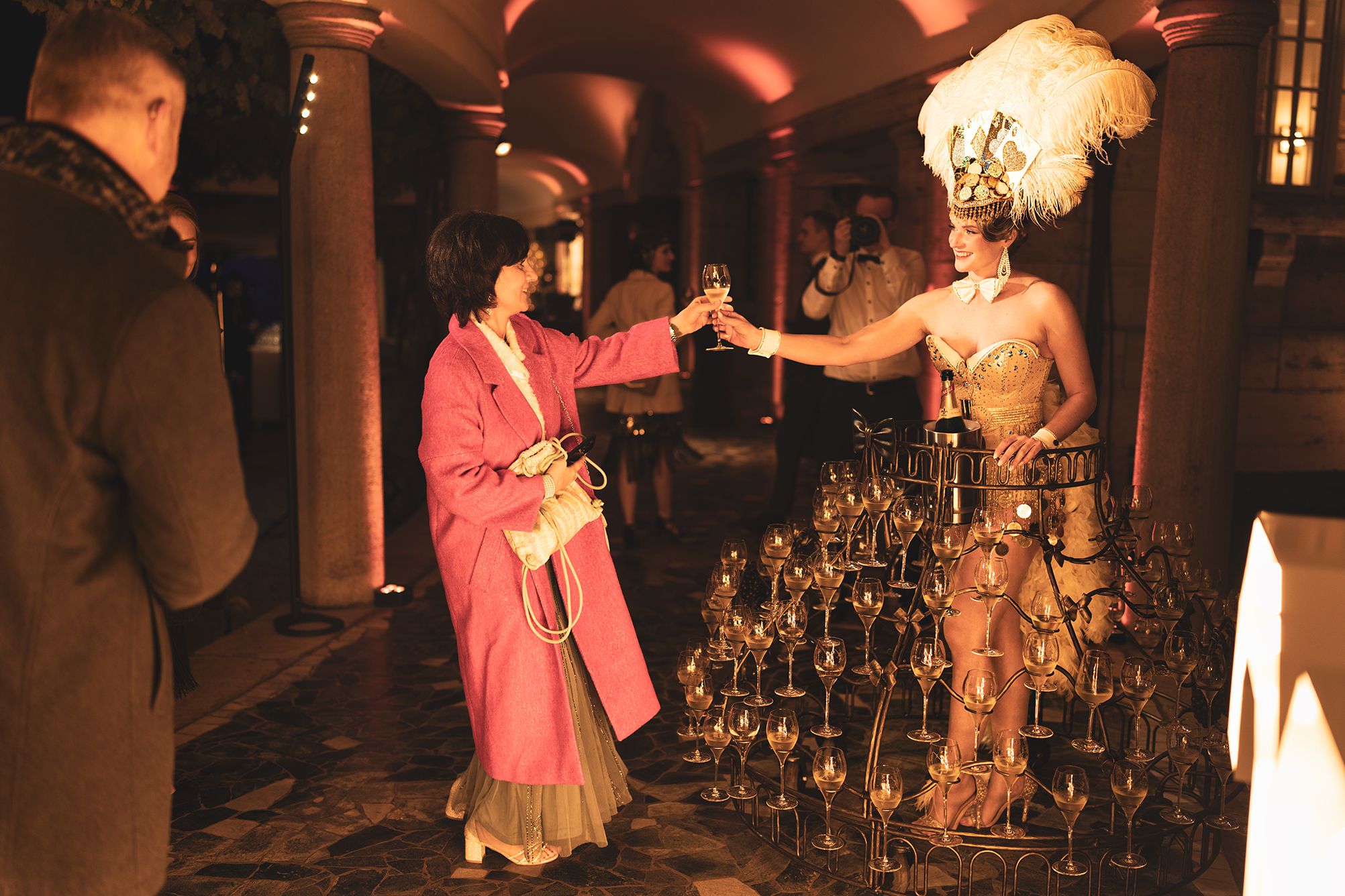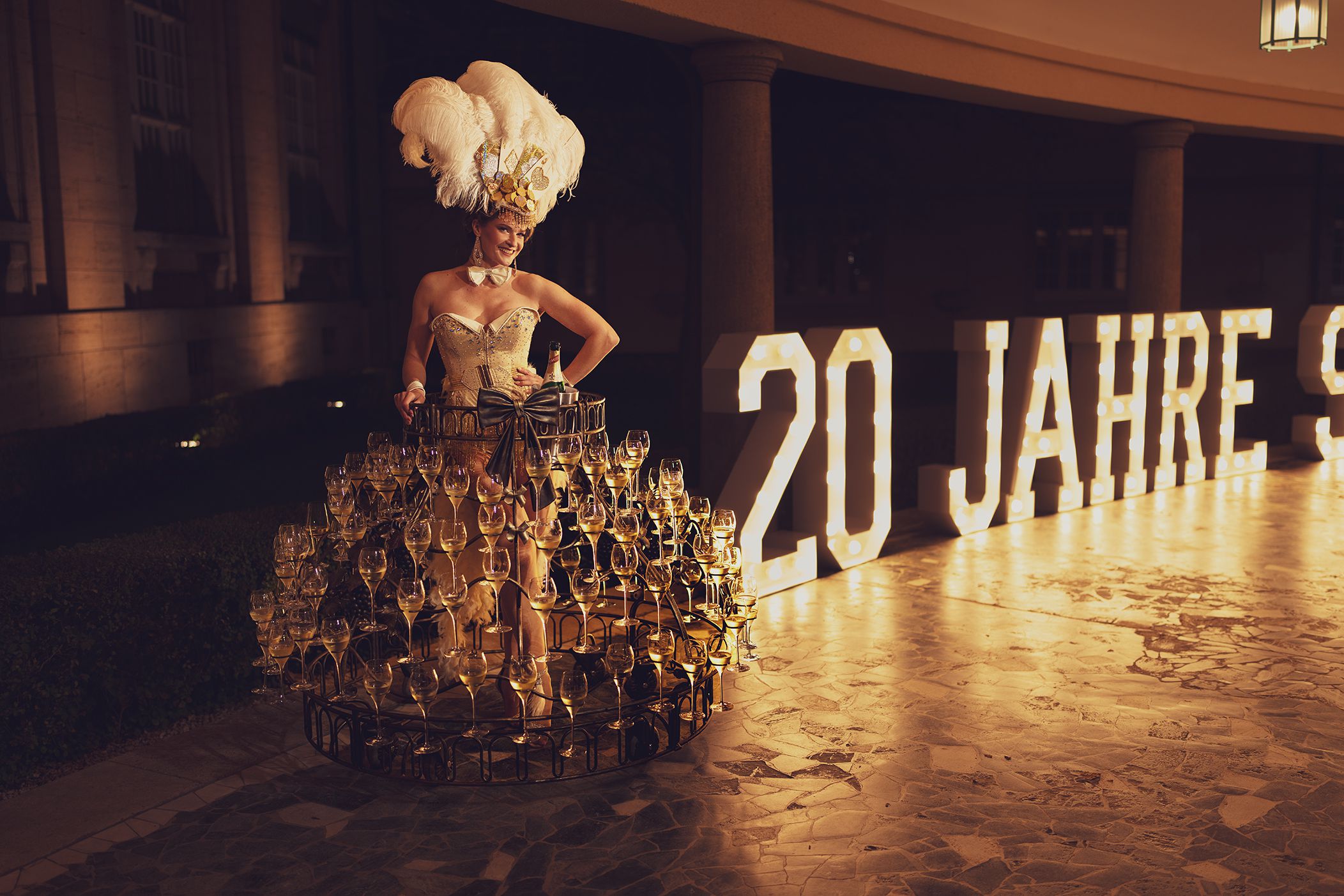 Un momento mozzafiato che lascerà i tuoi ospiti senza parole! Con sede a Colonia, in Germania, il nostro Vestito per lo Champagne è un mobile bar dello champagne unico nel suo genere che aggiunge un tocco di eleganza e spettacolo a qualsiasi occasione. Dai saloni nautici agli eventi aziendali, dai matrimoni alle fiere, alle cene di gala e alle feste private, questo capolavoro trasforma ogni istante in un'esperienza indimenticabile.
