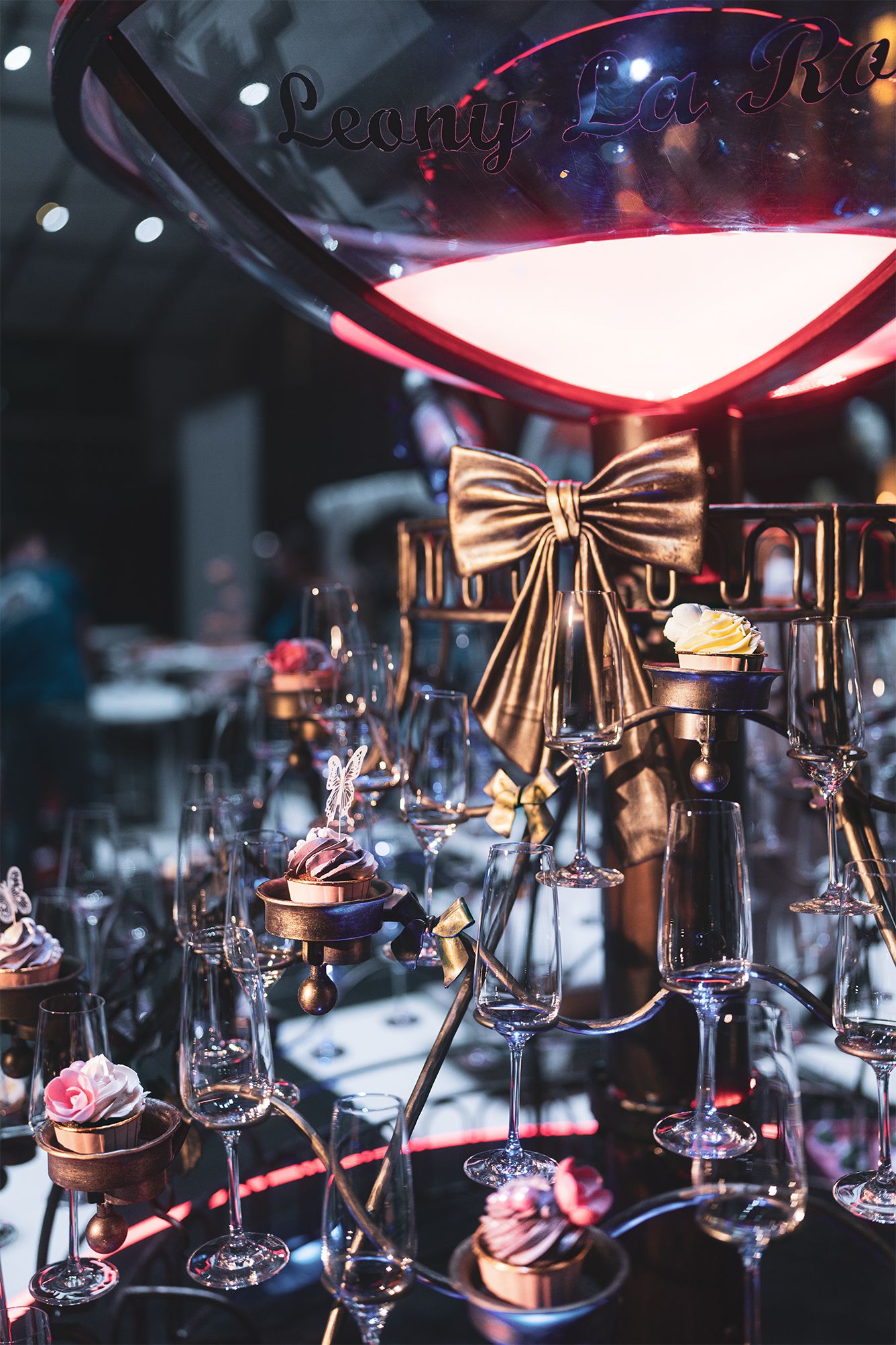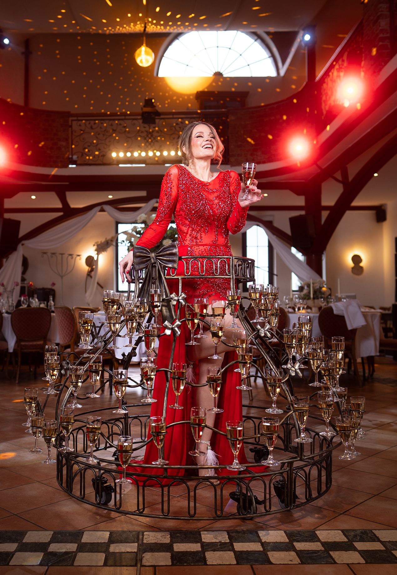 Con i suoi scomparti di servizio nascosti, una piattaforma rotante e un design mozzafiato, il vestito può trasformarsi in un mobile bar dello champagne, in un buffet volante o persino in uno spettacolare elemento illuminato. Che tu stia organizzando un lussuoso ricevimento, una festa a tema o un lancio esclusivo di prodotti, i nostri abiti su misura e il servizio personalizzato si adatteranno perfettamente allo stile del tuo evento.