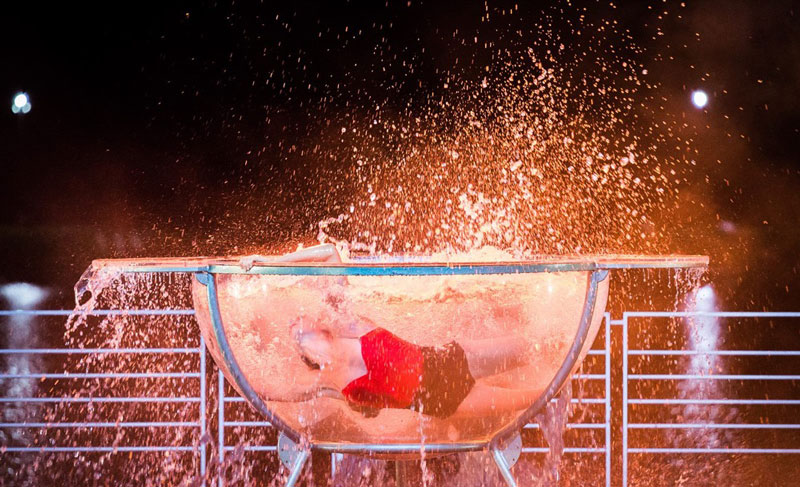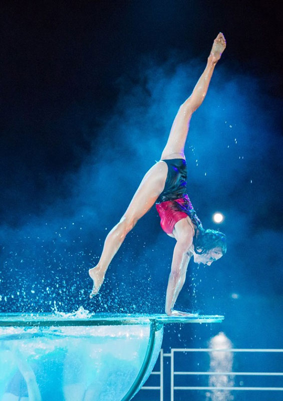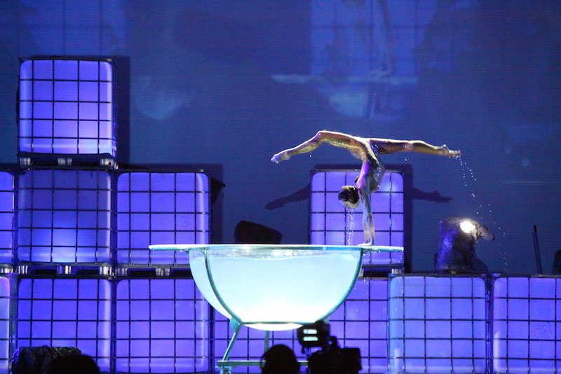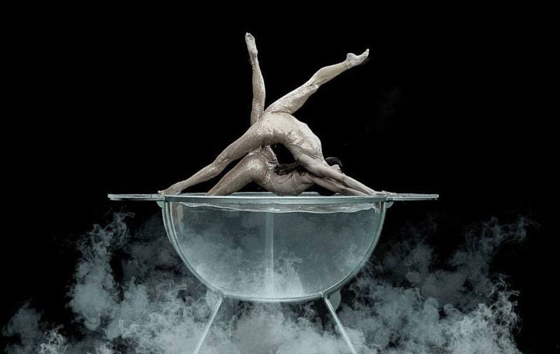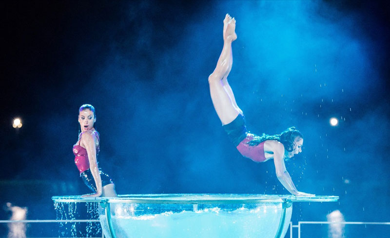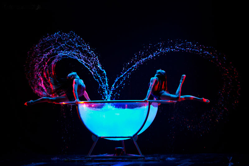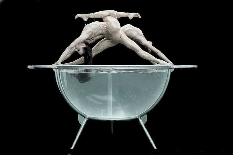 Ammirato dal pubblico di tutte le età, questo numero con le vasche d'acqua è una combinazione poetica di flessibilità sovrumana e combinazione impeccabile. La simbiosi poetica dei nostri artisti è davvero ipnotizzante da guardare, tenendo il pubblico a bocca aperta per la sua bellezza e complessità.
