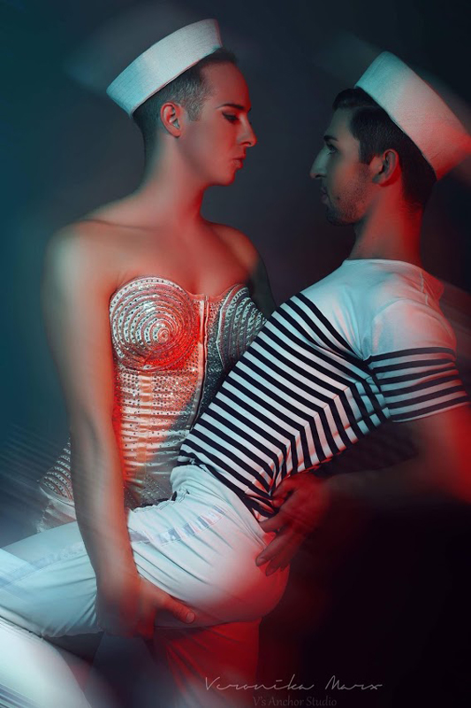 Un omaggio a Jean-Paul Gautier, il costume dello spettacolo è ispirato a una delle iconiche campagne di profumo del designer francese.