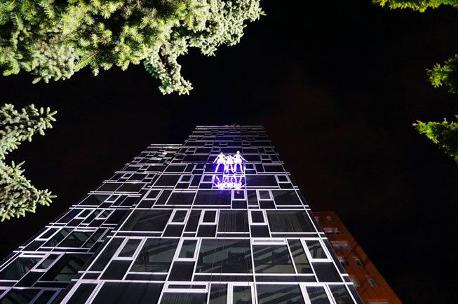 Illumina le facciate degli edifici con spettacoli acrobatici mozzafiato eseguiti in alto sopra la gente per uno spettacolo visivo che stupirà il tuo pubblico.