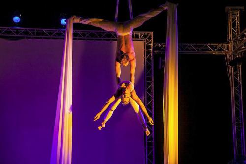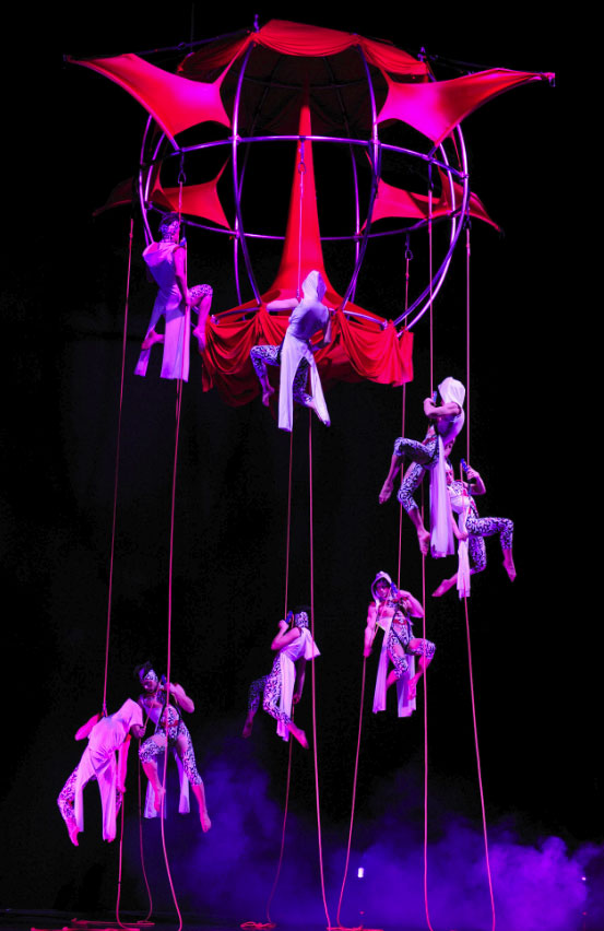 Gli acrobati volanti sono nati nel 2001 e attualmente eseguono quattro spettacoli acrobatici aerei mozzafiato: i primi due vengono eseguiti all'aperto appesi a una gru; gli altri due vengono eseguiti appesi a una struttura di tralicci o a una griglia teatrale. Se richiesto, possono anche eseguire mini-spettacoli tratti dai loro spettacoli principali, utilizzando 2 acrobati o più.