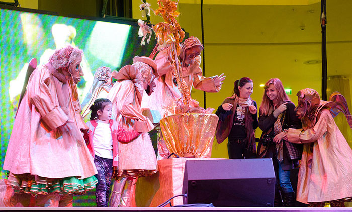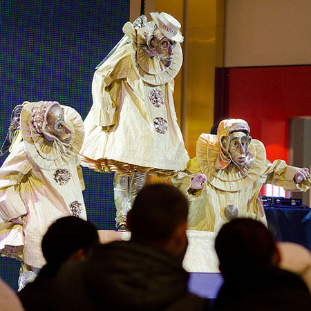 Gli stravaganti artisti sono vestiti come creature dorate, con bellissimi costumi dorati e maschere strane e meravigliose che li fanno sembrare creature da fiaba. Portano una vera sensazione di fantasia attraverso la loro presenza. L'aspetto visivo sorprendente di questo spettacolo farà girare la testa e catturerà il pubblico con stupore e meraviglia.