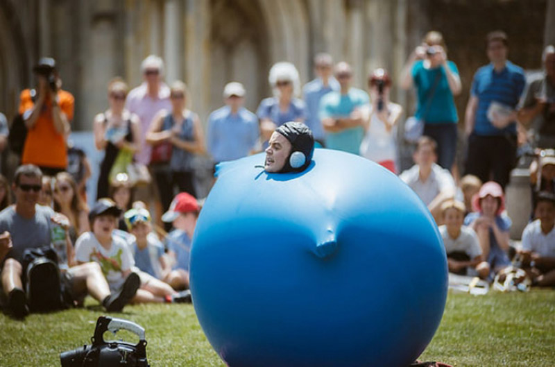 Utilizzando i palloncini come soggetto e strumento, manipola il mezzo per creare uno spettacolo divertente e coinvolgente per tutta la famiglia. Un performer carismatico, è in grado di coinvolgere il pubblico nel suo spettacolo, incoraggiando molta partecipazione. Inizia eseguendo magia con piccoli palloncini, evocandoli dal nulla e trasformandoli in forme sorprendenti. Poi gonfia i suoi palloncini appositamente progettati fino a renderli grandi come lui e può addirittura entrarci dentro, suscitando risate sia dai bambini che dagli adulti.