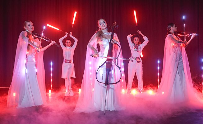 Con una sinfonia di luci brillanti, movimenti ipnotici e musica dal vivo, i nostri musicisti ad archi LED trasformano gli eventi in spettacoli magici e multisensoriali.