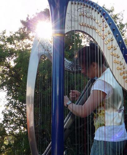 Può suonare l'arpa elettrica ed è disponibile con un chitarrista e un cantante