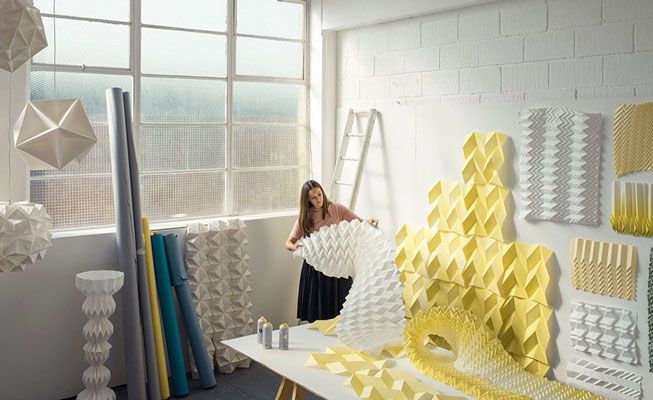Artista della carta crea allestimenti su misura, scenografie e sculture ispirate agli origami e alle forme geometriche.