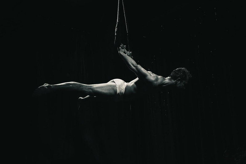 Questo artista aereo maschile è garantito per far cadere le mascelle al tuo prossimo evento con la sua forza sovrumana, grande flessibilità e coreografie aeree originali.