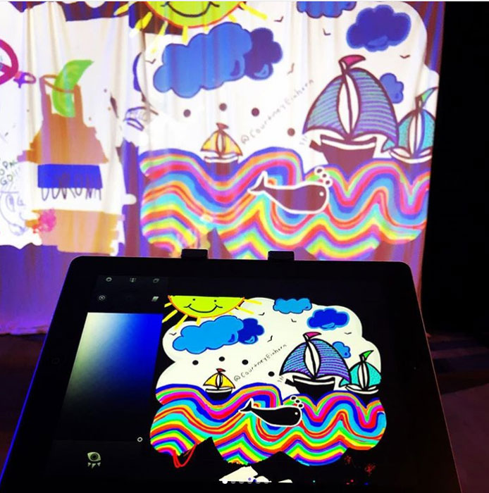 Egli si esibisce dal vivo utilizzando un iPad e l'app Tagtool per illustrare e animare in tempo reale, utilizzando edifici o palcoscenici come tela.
