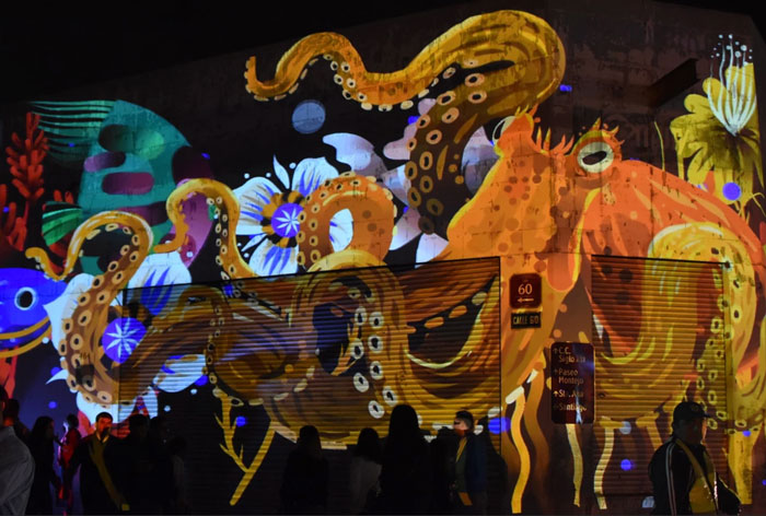 Artista della luce affascinante crea incredibili installazioni artistiche dal vivo immerse proiettate su superfici