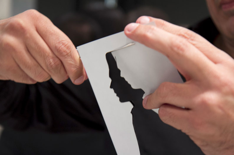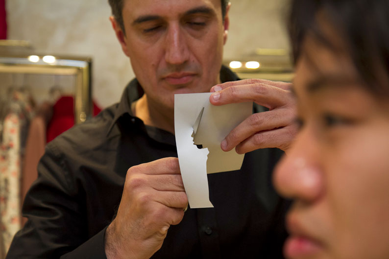 Igor, con sede a Barcellona, ha padroneggiato questa rara e intramontabile forma d'arte ed è ampiamente considerato uno dei migliori artisti di silhouette in Spagna. Utilizzando solo forbici e carta, ritaglia il ritratto del soggetto di profilo impiegando solo pochi minuti, ottenendo un'affascinante, dettagliata e altamente accurata somiglianza.