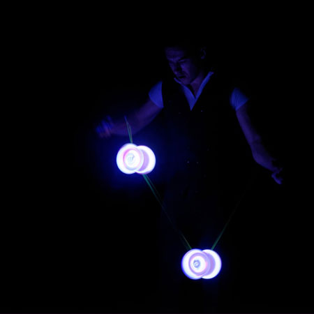 - Atto LED: gli artisti che brillano di luce LED fanno girare diablos illuminati nell'aria per produrre bellissimi colori e pattern.