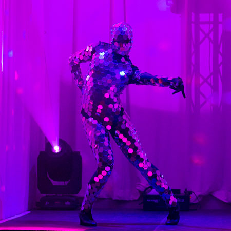 Uno spettacolo che riflette la luce in ogni direzione è stupefacente da guardare, poiché i nostri ballerini con specchi sono coperti dalla testa ai piedi di specchi che catturano la luce in modo splendido e illuminano qualsiasi stanza in cui entrano, attirando l'attenzione di tutti.