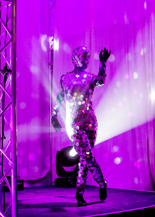 Sicuramente uno spettacolo da non perdere, che garantirà una serata glamour piena di brillantezza, luce e intrattenimento scintillante. I nostri meravigliosi ballerini con specchi creano uno spettacolo di luci mozzafiato mentre si muovono per la stanza, ballano su pedane, si mescolano tra la gente e si esibiscono in coreografie che sicuramente cattureranno l'attenzione di tutti.