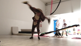 Spettacolo circense ad alto contenuto di adrenalina eseguito da acrobati estremamente abili che fanno salti e balzi mozzafiato