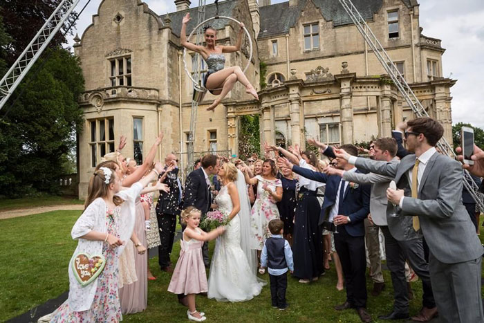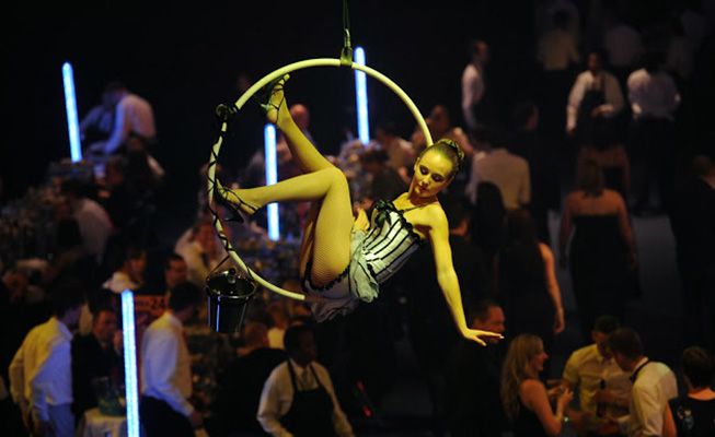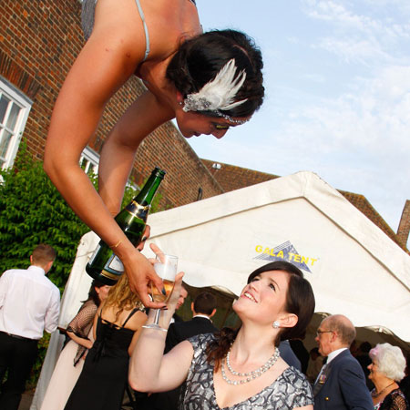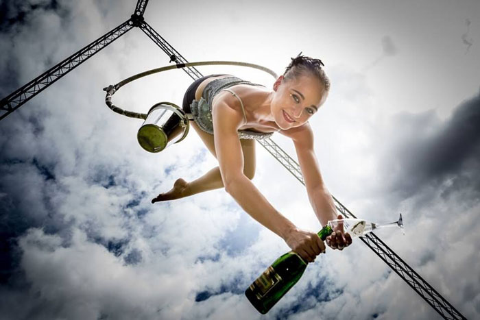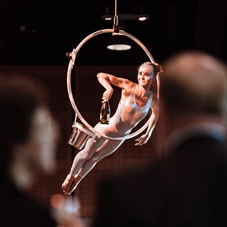 Fornendo le ballerine aeree più glamour del settore, non è sorprendente che questi servitori di bevande aeree siano stati prenotati da Reali e altri clienti VIP. Versando elegantemente champagne (o qualsiasi altra bevanda esotica!) per gli ospiti mentre sono appesi a testa in giù, i nostri versatori di champagne aerei aggiungono un tocco di sofisticatezza a tutte le occasioni. In grado di eseguire cerchio aereo o seta aerea mentre servono deliziose bevande, i versatili barman aerei si assicureranno che il loro atto sia adattato alle esigenze del tuo evento.