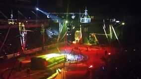 Il pubblico è stupito e emozionato mentre questo artista viene lanciato da un cannone, volando audacemente attraverso l'aria in un'acrobazia mozzafiato e sfidante la morte.