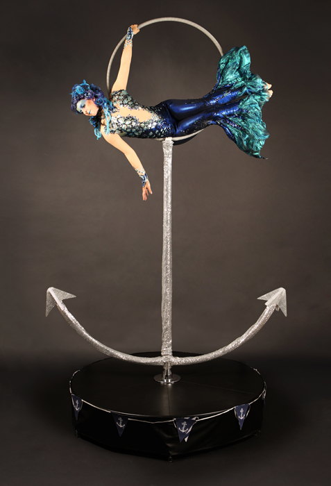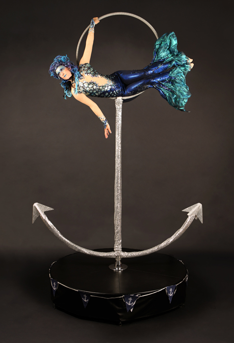Le sirene aeree si esibiscono su un innovativo ancoraggio aereo autoportante che è il primo del suo genere nel Regno Unito. Questo magnifico accessorio ha la forma di un'ancora e può apparire in una posizione per uno spettacolo aereo a tema sottomarino mozzafiato senza la necessità di essere appeso al soffitto.