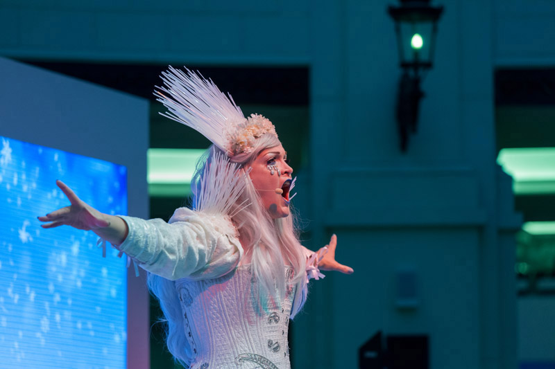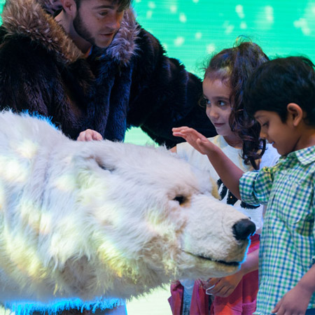 I tuoi ospiti si immergeranno in una storia affascinante in cui una bambina si perde in una tempesta di neve. Mentre cade addormentata, troppo stanca e fredda per andare avanti, si sveglia in un mondo dei sogni dove incontra una serie di personaggi fantastici con costumi incredibili. Una bellissima ma feroce Regina del Ghiaccio incanterà con canzoni suggestive, eleganti fate di ghiaccio incanteranno con danze di balletto, talentuosi acrobati di cristallo stupiranno con l'equilibrio a mano a mano, due clown artici divertentissimi causeranno molte risate e un coraggioso esploratore artico accompagnato da un impressionante orso polare animatronico di dimensioni naturali di colore bianco nevoso lascerà tutti senza fiato!