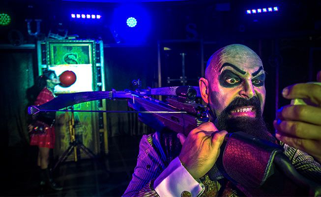 Lanciando coltelli, asce, lance e balestre, la nostra star circense è specializzata in una forma rara e insolita di espressione artistica; un'arte tradizionale unica le cui origini sono perse nella notte dei tempi...