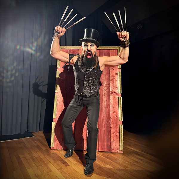 Combinando acrobazie che sfidano la morte, commedia e suspense, il nostro stuntman e lanciatore di coltelli produce spettacoli ipnotizzanti che si sono rivelati un enorme successo tra i fan di tutto il mondo. La sua forma unica e drammatica di intrattenimento lascia in soggezione i suoi spettatori per via della sua precisione e dell'abilità esemplare.