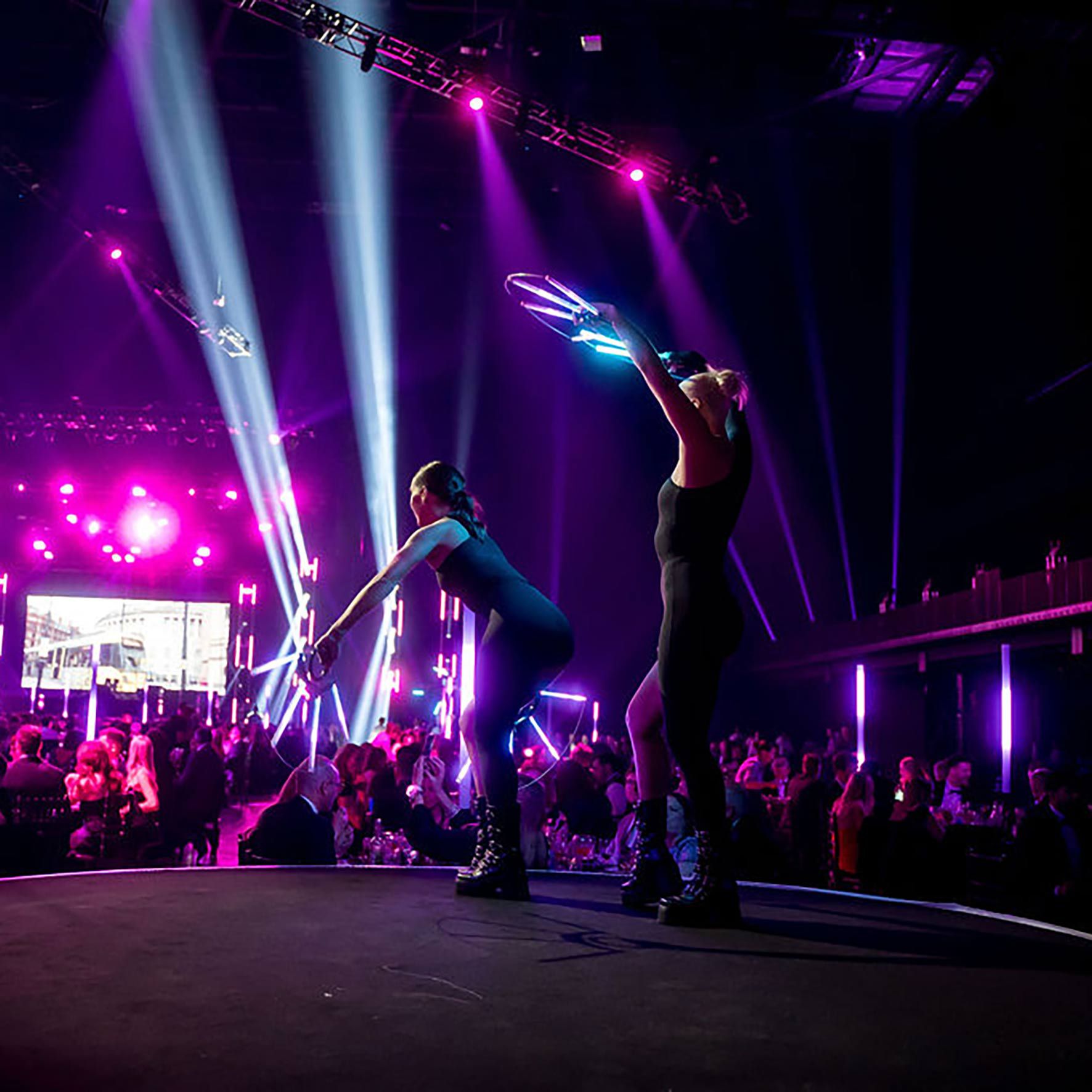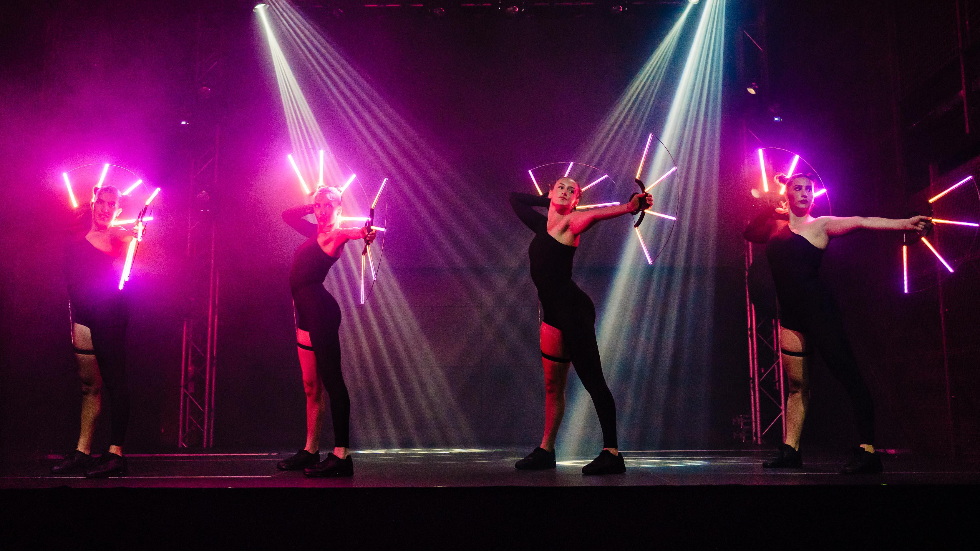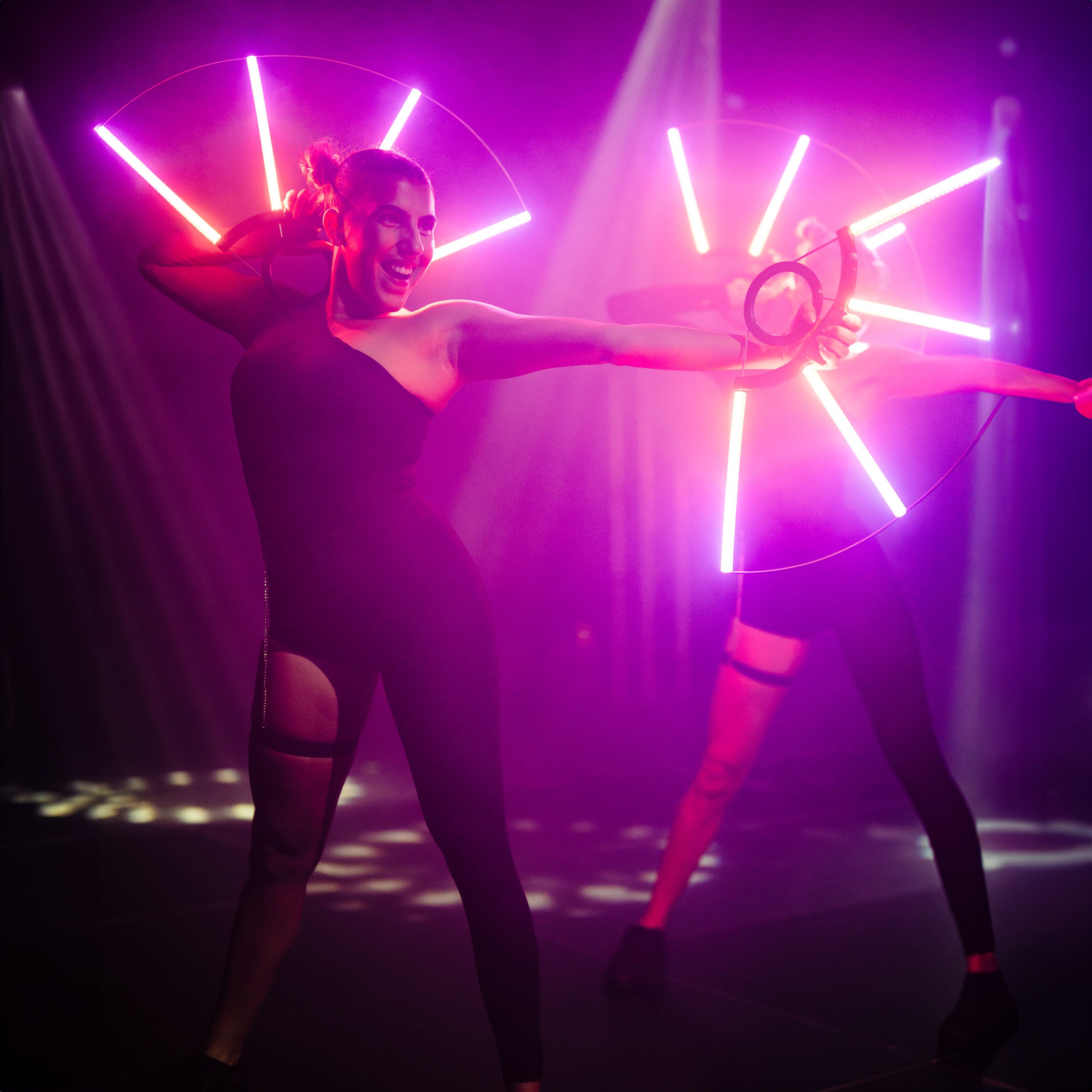 Le nostre ballerine con ventagli a LED offrono spettacoli di danza ambientali ipnotici e coreografie ad alta energia che aggiungono un tocco elegante a qualsiasi evento.