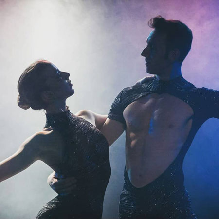 Con eccezionali esperienze nel balletto, nella danza contemporanea e nel circo, questi due artisti fondono le loro abilità insieme per creare una straordinaria routine di danza aerea con la seta che trabocca di emozione, talento puro e anni di allenamento.