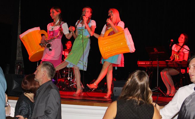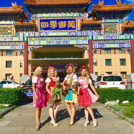 Porta lo spirito dell'Oktoberfest con questa band tutta al femminile, nota per i loro spettacoli sul palco vivaci e coinvolgenti interazioni con il pubblico.