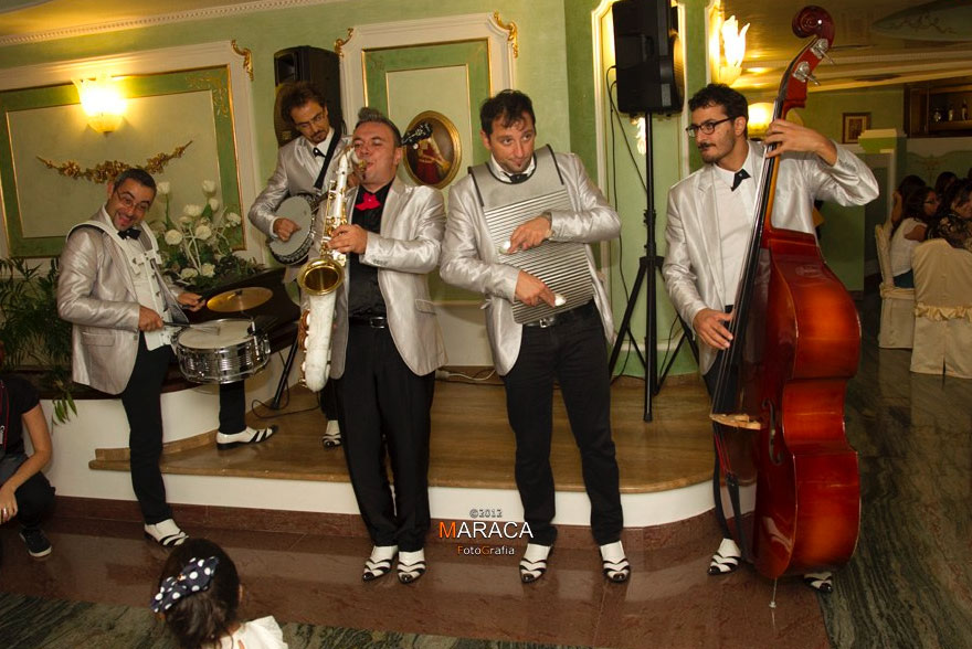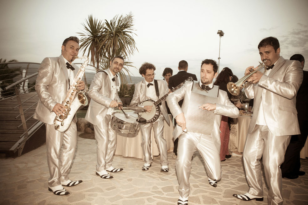 Questa fantastica band jazz è la scelta migliore sul mercato per portare musica jazz di alta qualità e atmosfere di festa emozionanti in ogni angolo del tuo evento. La nostra band di swing itinerante suona una grande varietà di standard jazz, blues e jive con un repertorio che include le hit di Louis Armstrong, Frank Sinatra, Dean Martin, Elvis Presley e molti altri, insieme ad una selezione di classici italiani.