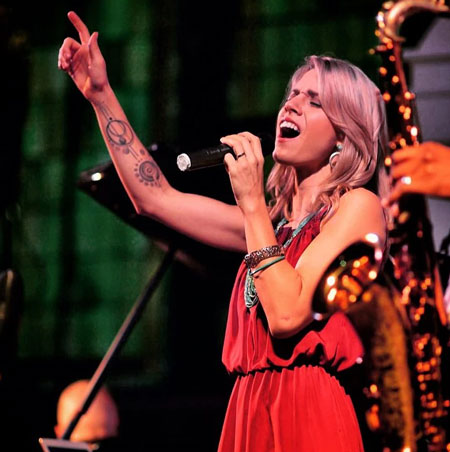 Non solo, ma la nostra cantante di jazz può anche esibirsi in trio o quartetto, con la scelta di chitarra, tastiera/pianoforte, basso, batteria, sassofono, tromba o trombone, creando una band di jazz completamente personalizzabile che è progettata per adattarsi perfettamente al tuo evento. Inoltre, la nostra cantante femminile può esibirsi con altri 4 artisti in una band di 5 elementi infuocata, comprensiva di voce, tastiera, chitarra o basso, batteria e un fiato che suona jazz, blues, swing, soul, funk, Motown e richieste del pubblico. Una grande band swing che garantirà che i tuoi ospiti ballino tutta la notte.