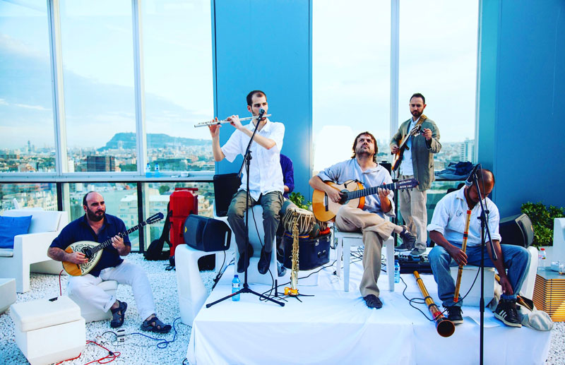 Questa band Chill Out di Barcellona è un'ode alla fusione delle culture in quanto i suoi membri provengono da cinque paesi diversi: Cile, Brasile, Spagna, Francia e Nepal. Questo affascinante mix crea un suono unico, mescolando strumenti diversi come la tabla indiana, il cajón flamenco, la chitarra spagnola, l'Hang Drum, il sassofono, la chitarra elettroacustica o il Bansuri (un flauto di bambù dal Nepal).