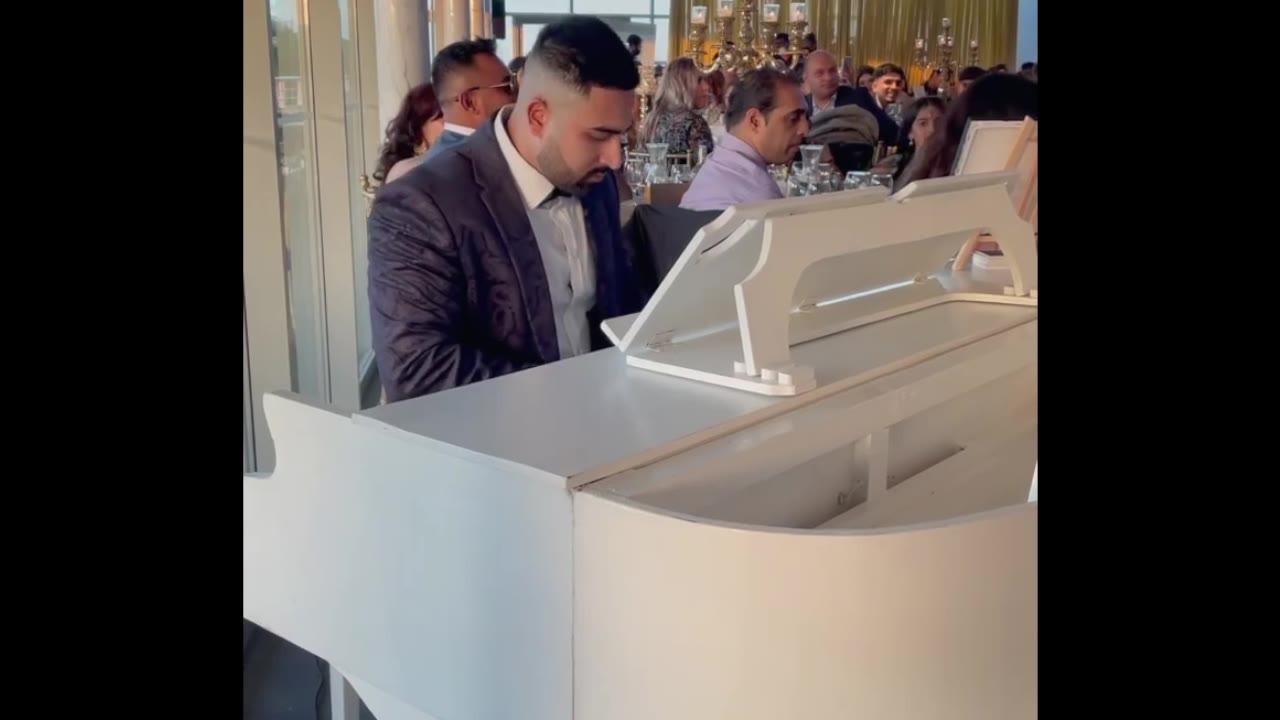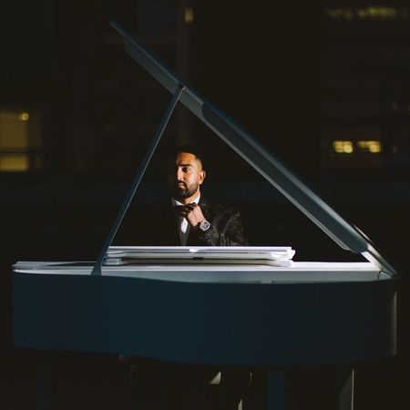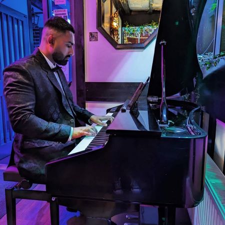 Questo pianista di Bollywood può esibirsi su un pianoforte accordato presso il tuo locale o fornire il suo proprio pianoforte a coda bianco per la tua prenotazione.