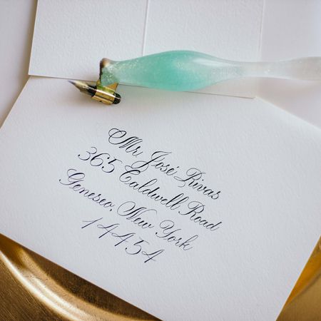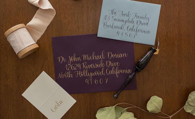 La nostra artista di calligrafia può personalizzare l'indirizzamento delle buste, i segnaposto, le etichette per bagagli e gli inviti.