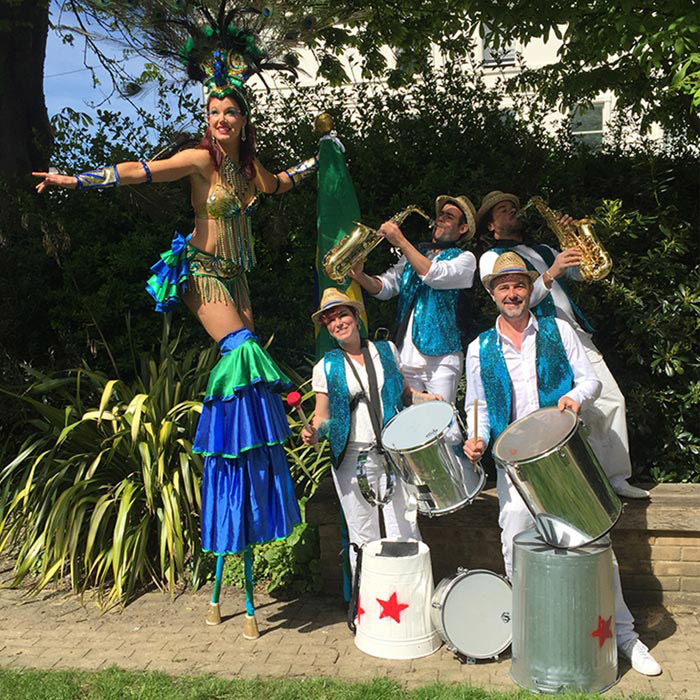 Camminatori su trampoli a tema brasiliano