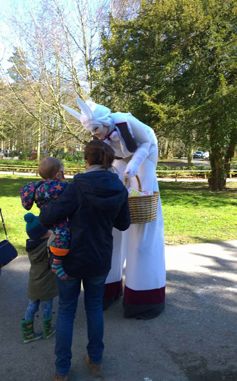 Con le sue orecchie soffici, la coda e i guanti, i bambini non possono fare a meno di innamorarsi di questo coniglio super alto! Disponibile insieme alla signora Greenfingers, la coppia è stata inclusa in eventi per Larmer Tree Gardens, Kirkgate Market, Middleton Lodge e molti altri.