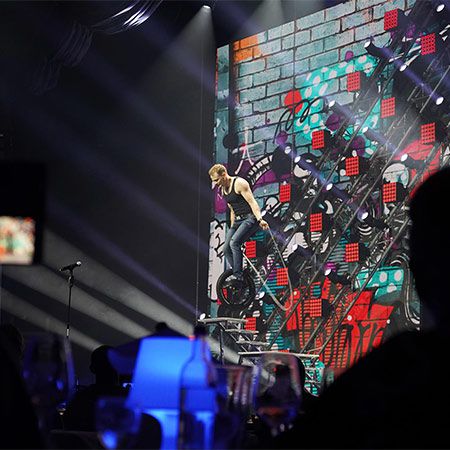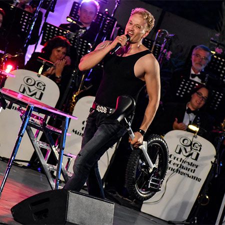 Il nostro incredibile vocalist su monociclo impressionerà il tuo pubblico con il suo spettacolo unico nel suo genere che combina abilità circensi e canto.