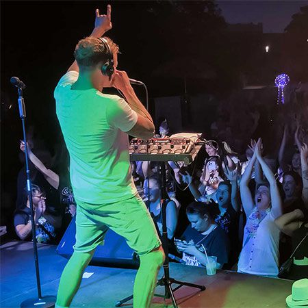 Con la sua ampia gamma vocale, l'artista vanta un repertorio contemporaneo per accompagnare la sua distintiva performance di monociclo.