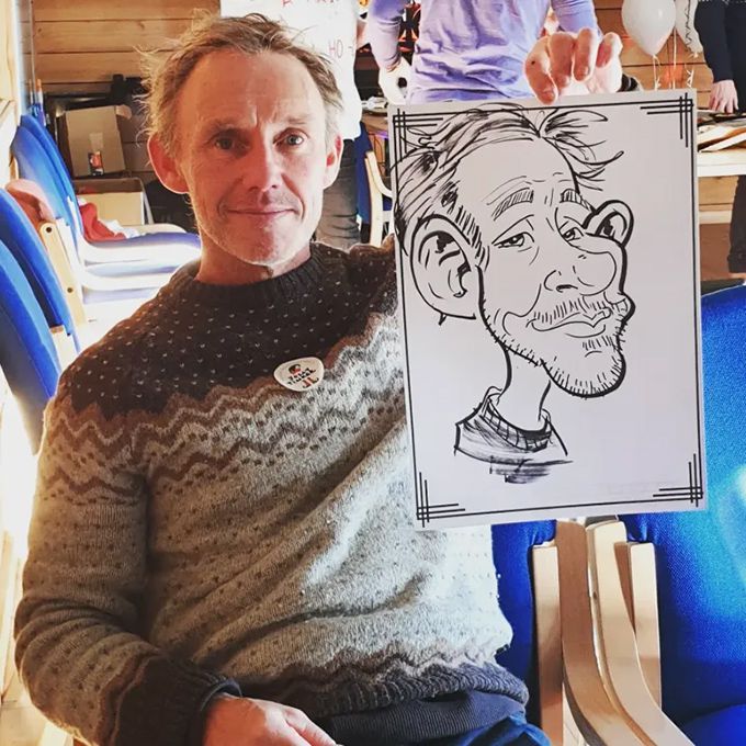 Messo in una posizione fissa presso la tua location, questo caricaturista non manca mai di attirare la gente con i suoi divertenti schizzi degli ospiti.