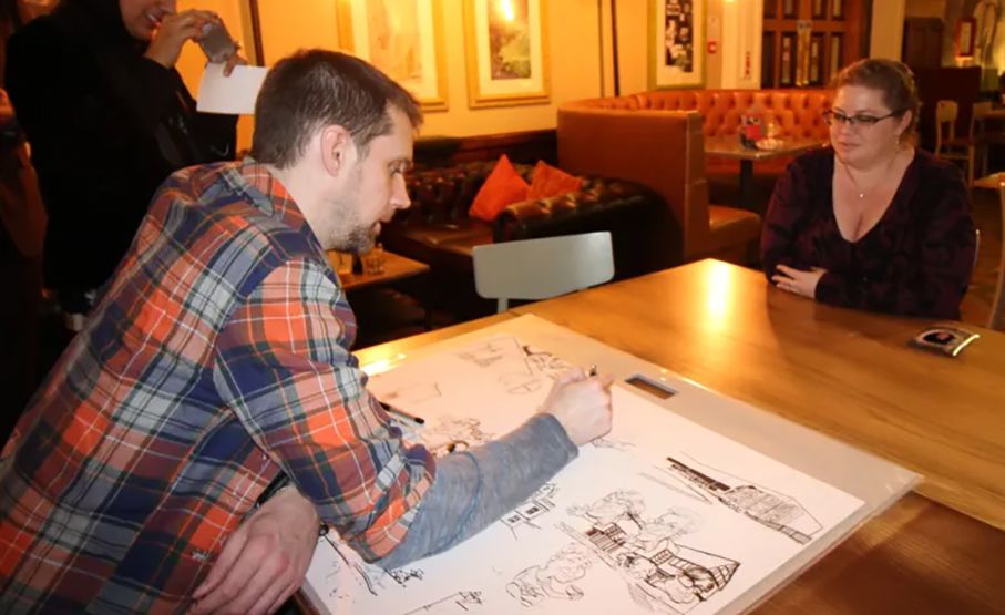 Prenota un caricaturista tradizionale per animare la tua mostra, ravvivare la tua festa e stupire gli ospiti del tuo matrimonio.