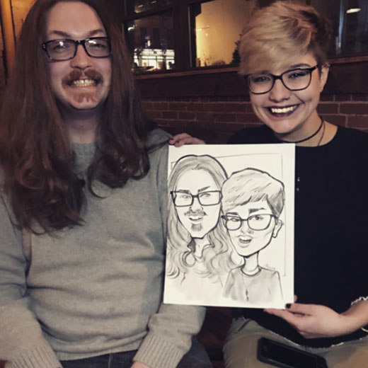 È disponibile per fornire sia caricature tradizionali che gli ospiti possono portare via, sia versioni digitali disponibili per il download.