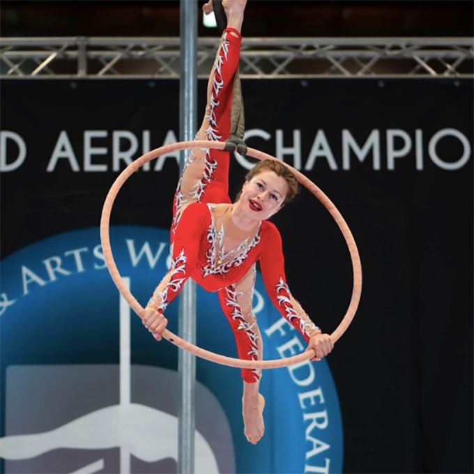 Questa artista di cerchio aereo è situata a Bordeaux ed è disponibile su prenotazione a livello internazionale.
