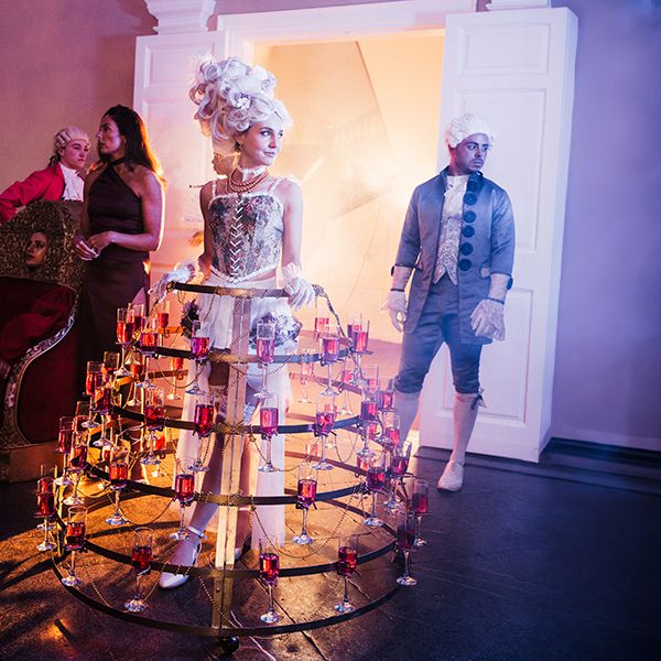 Il nostro abito da champagne non serve solo bevande ma funge anche da intrattenimento interattivo, coinvolgendo gli ospiti e offrendo un'esperienza unica!