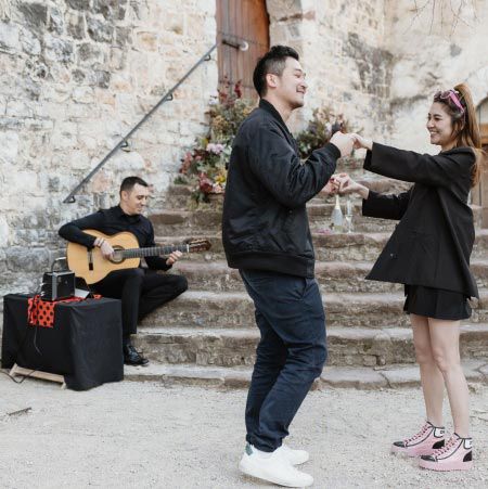 " Cercavamo un chitarrista per il nostro matrimonio per illuminare l'atmosfera del ricevimento. Dopo aver cercato un chitarrista l'abbiamo trovato ed è stato una grande scelta. Flessibile quando si trattava di programmazione, porta il suo sistema audio, la sua performance è di altissimo livello e ha una presenza scenica molto buona. Gli ospiti sono stati deliziati dalla sua performance. "