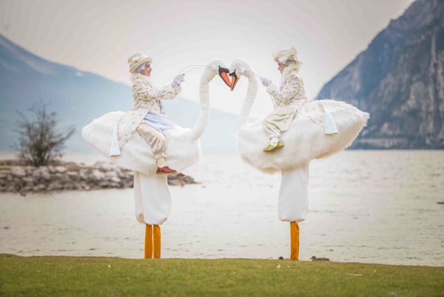 Il cigno è riconosciuto a livello internazionale come simbolo di bellezza regale e meraviglia da fiaba. I nostri artisti itineranti incarneranno queste stesse qualità nella loro performance mentre si mescolano tra i tuoi ospiti, creando uno spettacolo attraente e di impatto. I nostri due trampolieri utilizzano i loro trampoli e i costumi per creare l'illusione di cavalcare graziosi cigni da fiaba e creare scene che sembrano tratte direttamente da un libro illustrato, catturando l'immaginazione dei bambini e degli adulti. I nostri brillanti trampolieri a forma di cigno possono essere accompagnati da un terzo artista che seguirà i cigni da terra, suonando una meravigliosa musica classica dai suoi altoparlanti portatili per uno spettacolo itinerante coinvolgente definitivo. Gli ospiti adoreranno l'atmosfera creata da questi artisti maestosi e il loro spettacolo itinerante interattivo garantirà una giornata indimenticabile per tutti. Perfetti per aggiungere magia a un circo, festival, parata o fiera di strada, non perdere l'opportunità di prenotare questo incredibile spettacolo del cigno per il tuo evento.