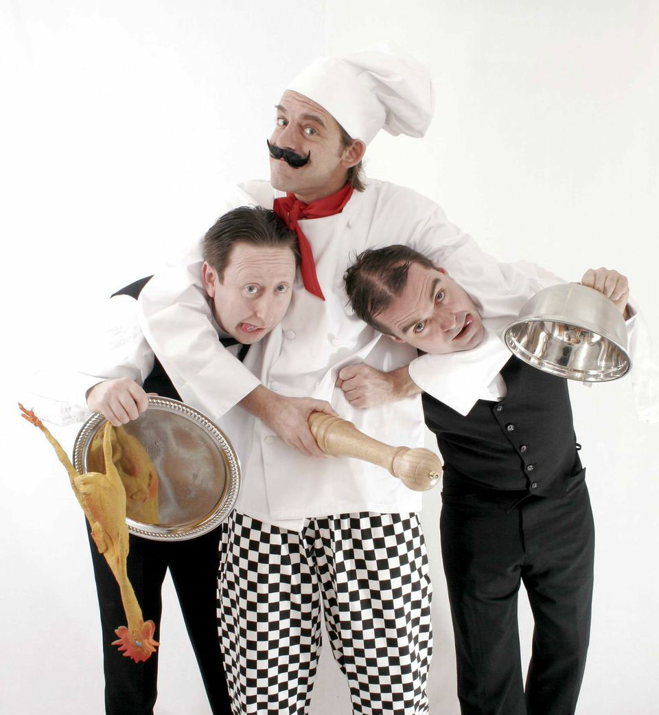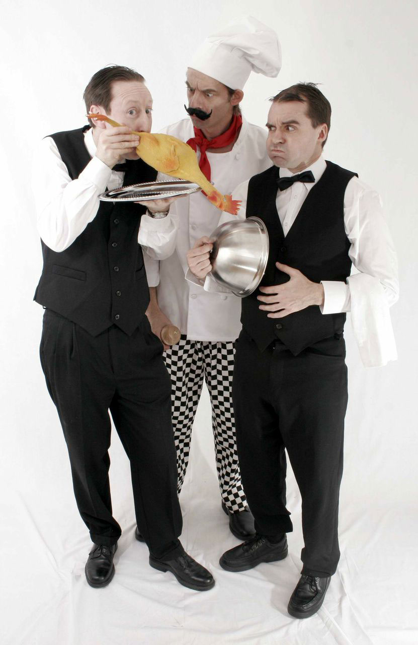 Un gruppo di sciocchi senza alcuna idea di etichetta o classe, questo chef inetto e i suoi due camerieri maldestri sono una ricetta sicura per il disastro ogni volta che si avvicinano a una cucina! Buffoni pigri senza gusto, saranno un successo immediato al tuo evento grazie al loro umorismo slapstick e modi pazzi.