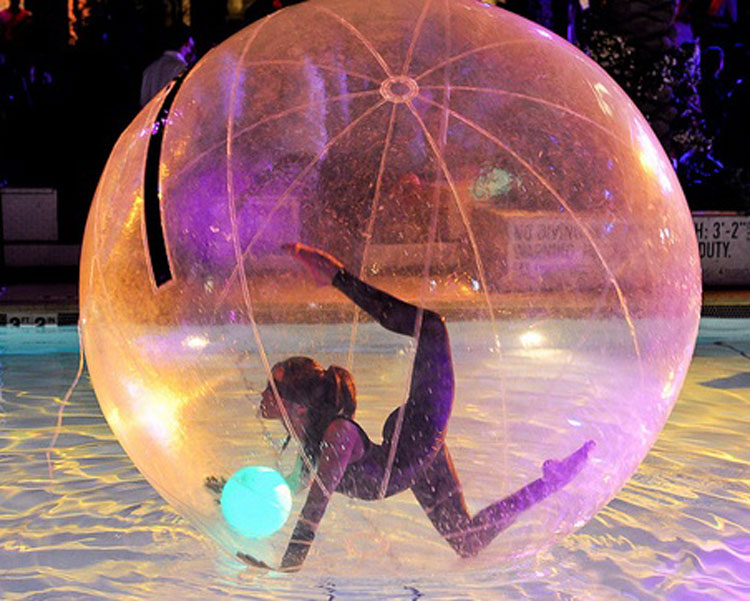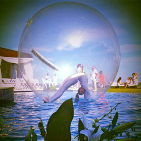 I nostri contorsionisti delle bolle possono eseguire il loro spettacolo sull'acqua per uno spettacolo stupefacente che offre un fattore WOW, riempiendo le loro bolle con coriandoli colorati, piume, petali di rosa, carte da gioco, neve e tutto ciò che si desidera per offrire una performance più personalizzata che si adatti perfettamente al tuo evento.