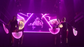Una performance di danza affascinante e coreografata che incorpora accessori come il ventaglio a LED per creare uno spettacolo scenico mozzafiato