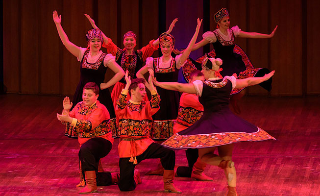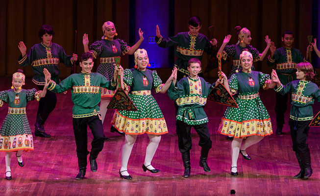 Le performance includono la danza, così come l'apparizione di strumenti tradizionali come la balalaika.
