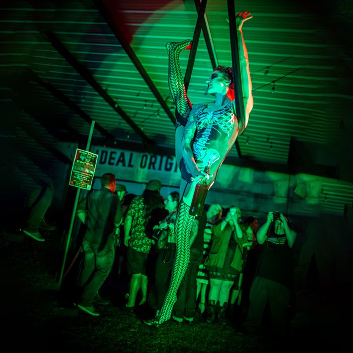 Oltre alle esibizioni ambientali e coreografate, la nostra acrobata aerea del Texas offre anche il servizio bar aereo su un'amaca o una cinghia