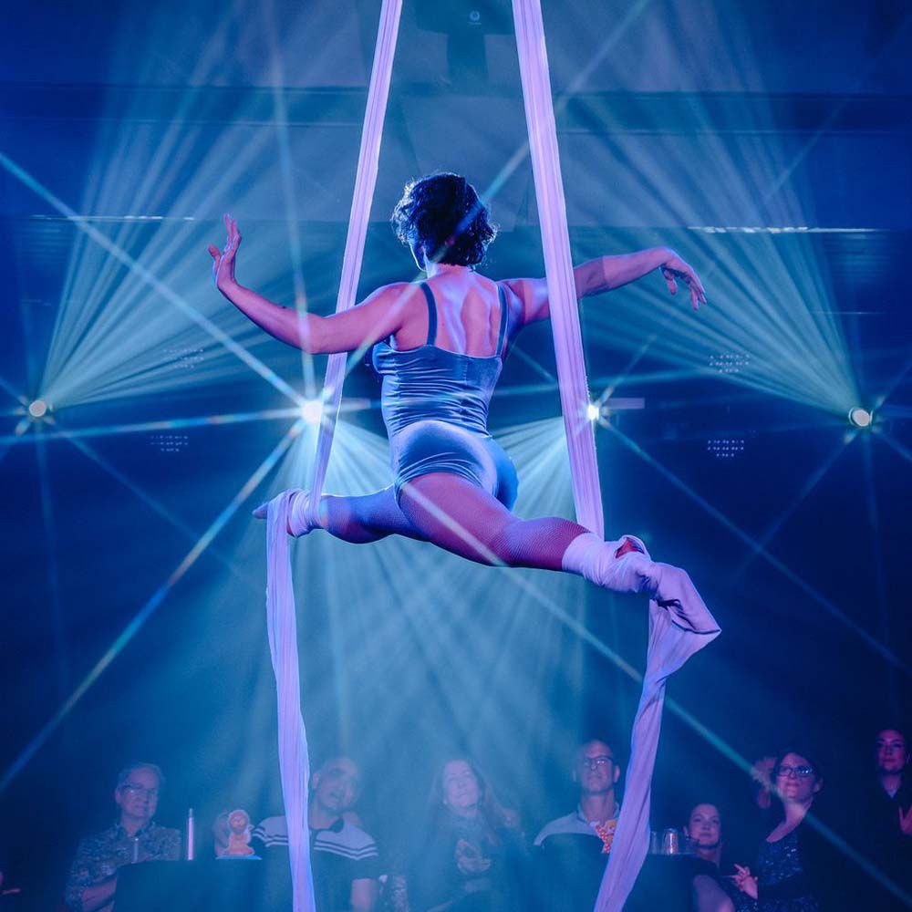 La nostra danzatrice di tessuti aerei porta con sé un mix unico di eleganza e vivacità nella sua performance e offre una presentazione armoniosa.